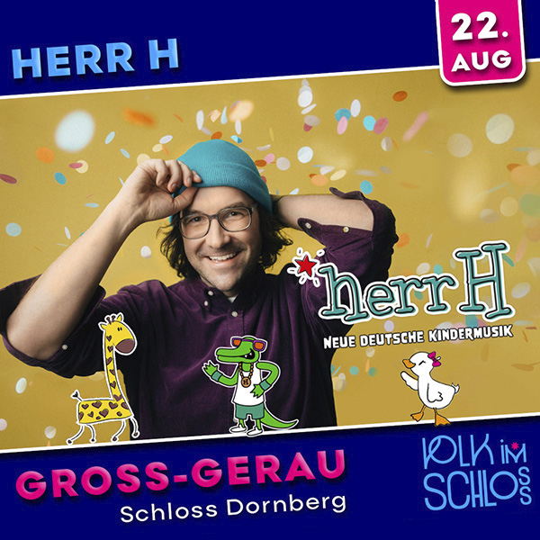 Er definiert den Begriff „Kinderkonzert“ neu und macht daraus kurzerhand ein Familienkonzert mit Wow-Faktor. Bis zu 200 mal im Jahr lädt er Kinder und Eltern von der Ostsee bis zu den Alpen dazu ein, mit ihm und einer Extraportion Konfetti, Nebel, Kuscheltier Stagedive und dicken Bässen im Bauch eine XXL-Familyparty zu feiern. Jede Menge „Neue Deutsche Kindermusik“ und Hits wie „EMMA, DIE ENTE“ oder „RAFFI, DIE GIRAFFE“ dürfen auf keiner herrH-Setlist fehlen. Weit mehr als 150 Millionen Streams seiner Songs sowie Auftritte mit bekannten Popstars bei Festivals und TV-Sendern wie KIKA beweisen eindrucksvoll: herrH ist aus dem Leben der Familien nicht mehr wegzudenken und will nicht nur den Kleinen unvergessliche Live-Momente bescheren – auch die Großen sollen sich bei seinen Konzerten wohl fühlen und nochmal Kind sein dürfen.